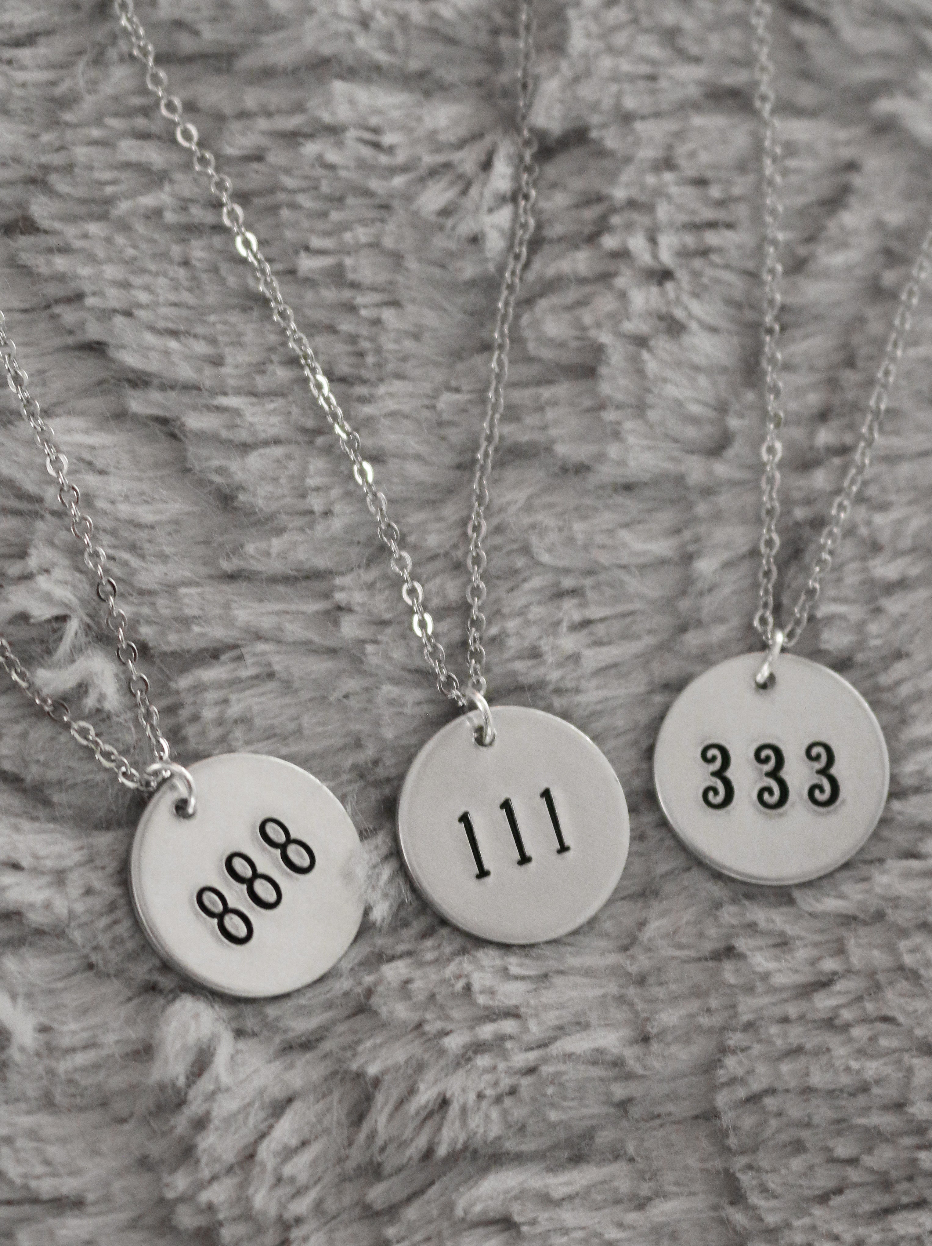 Our collection of angel number necklaces features a powerful angel number inscribed into each charm, providing spiritual protection and guidance from the universe. Each necklace is crafted with a special angel number sequence to bring the wearer luck and good fortune. Wear this necklace to enjoy its spiritual protection from any repeating number you've seen consistently. The universe gives us signs with repeating numbers and you can choose whatever repeating number you'd like on your necklace.