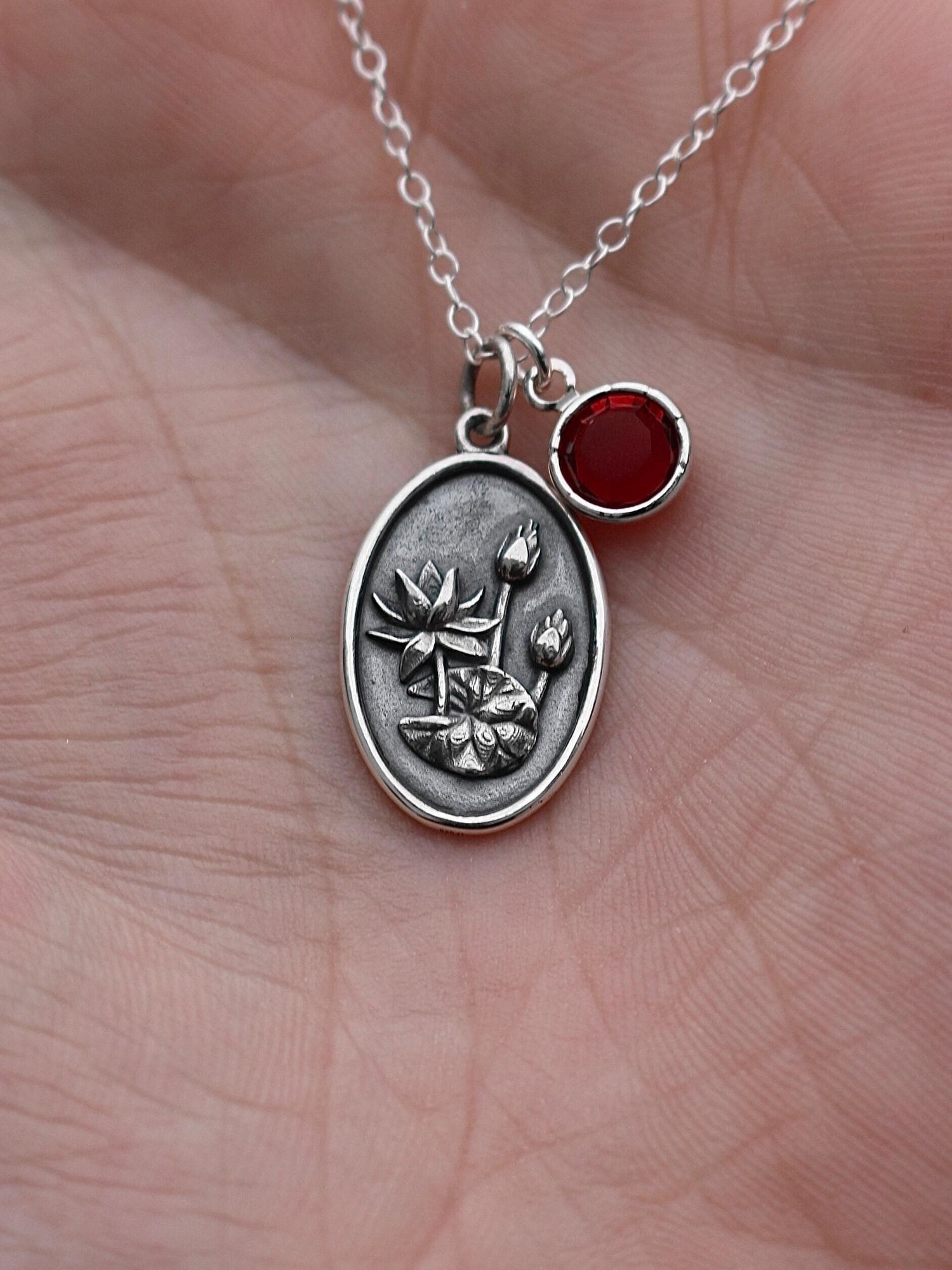 July Birth Flower Medallion Necklace - Water Lily