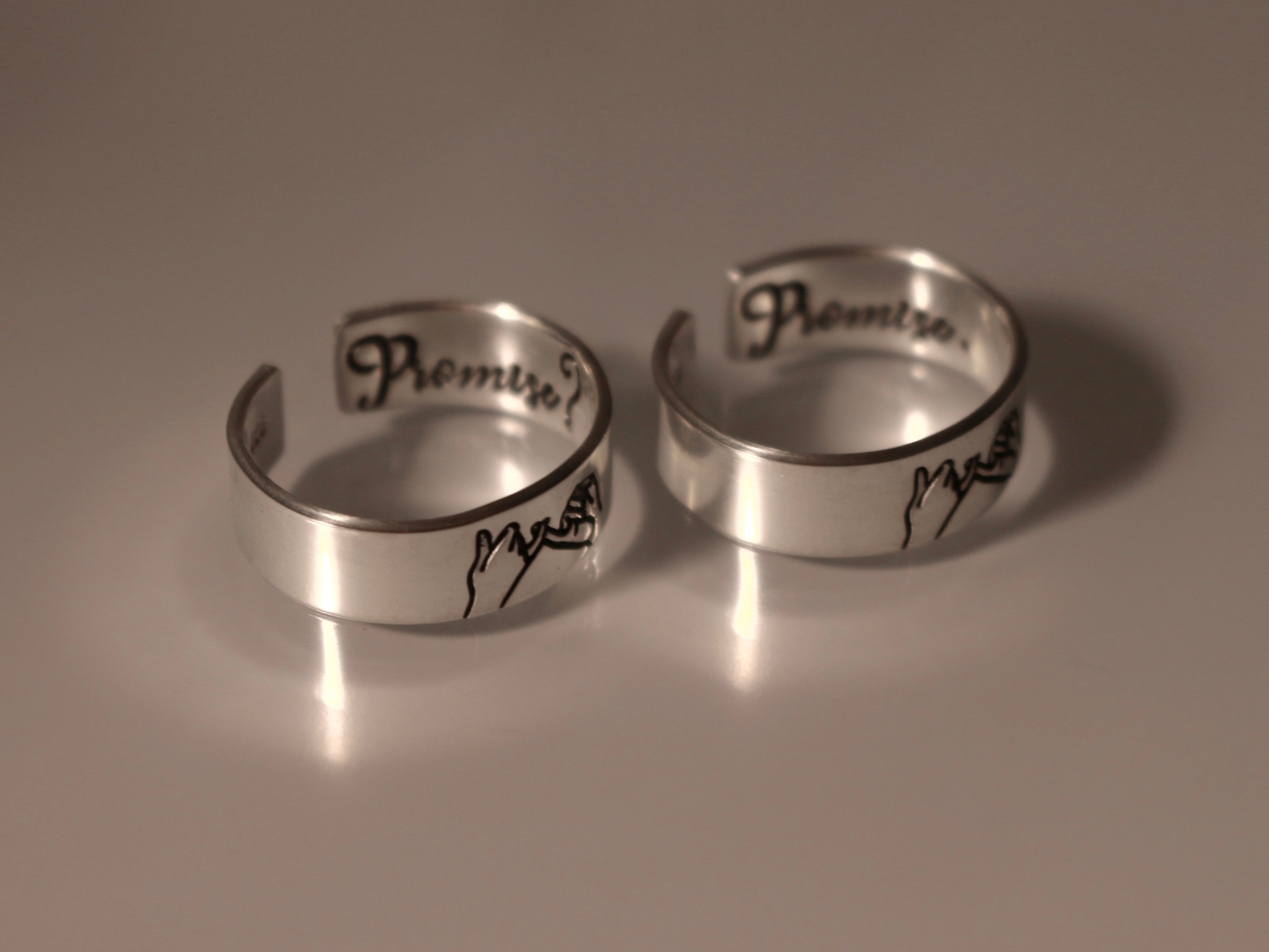 This collection of single and sets of promise rings features two intricate and trendy designs. With many matching couples version, these rings are the perfect way to express commitment and love to your partner. These jewelry pieces are crafted with quality materials and are ideal for a modern couple. Show your commitment with some of our beautiful matching promise rings. The perfect symbol of love, these lovely couples promise rings can come in a set or alone with a unique promise ring design. Make your love official with these matching promise rings! Crafted with love and made to last, these promise rings can come as a matching set - perfect for couples looking to show off their unending devotion to one another. The ring sets and matching promise rings are the perfect symbol of forever for you and your significant other. Our matching promise rings are uniquely designed to symbolize your special bond. Treat yourselves to a timeless token of devotion with this one-of-a-kind matching promise ring set. Get your rings and put a smile on your special someone's face.