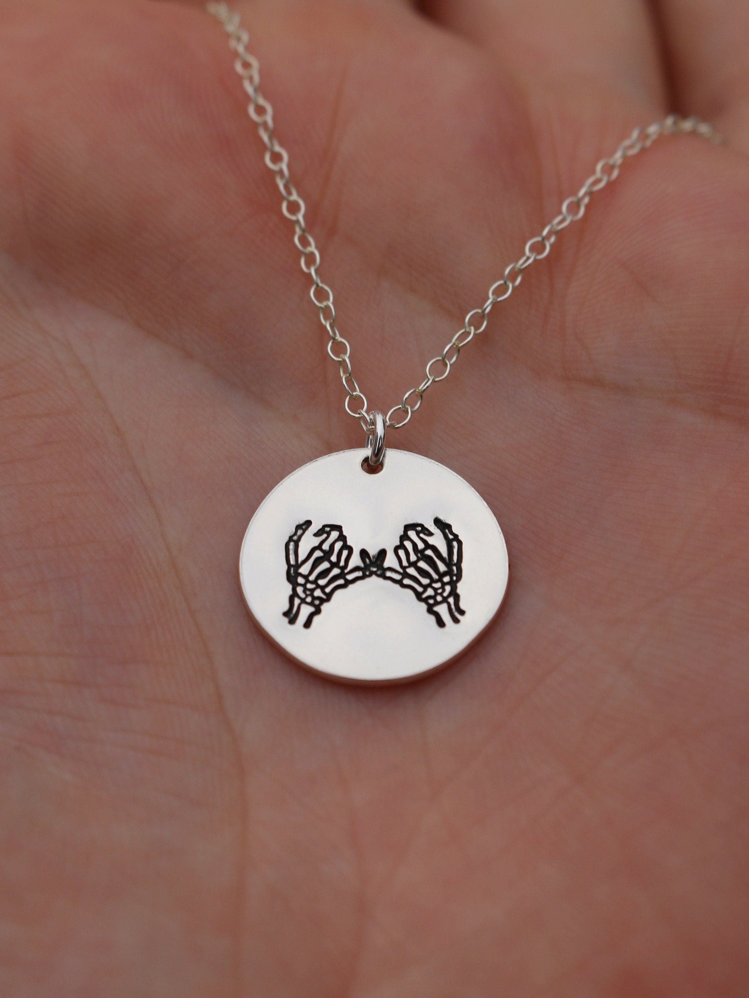 Celebrate unbreakable bonds with the Double Skeleton Pinky Swear Silver Charm Necklace. Crafted in sleek silver, this unique piece captures the timeless gesture of trust and promise between close friends or loved ones. Its delicate design makes it perfect for everyday wear, keeping meaningful connections close to your heart. A thoughtful gift to symbolize loyalty and commitment, this necklace adds a subtle yet powerful statement to any outfit. Embrace your promises with style and sincerity.