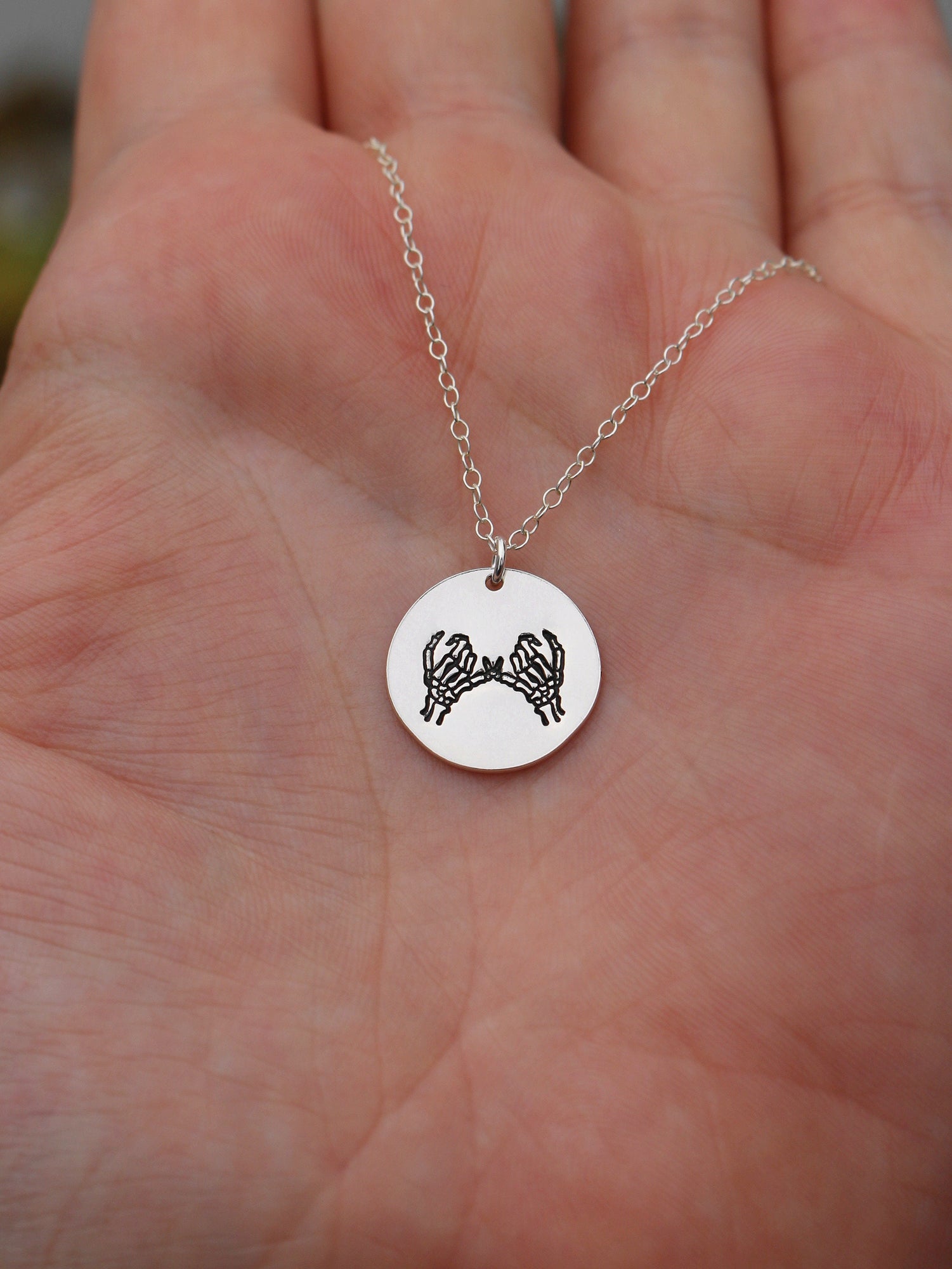 Double Skeleton Pinky Swear Silver Charm Necklace