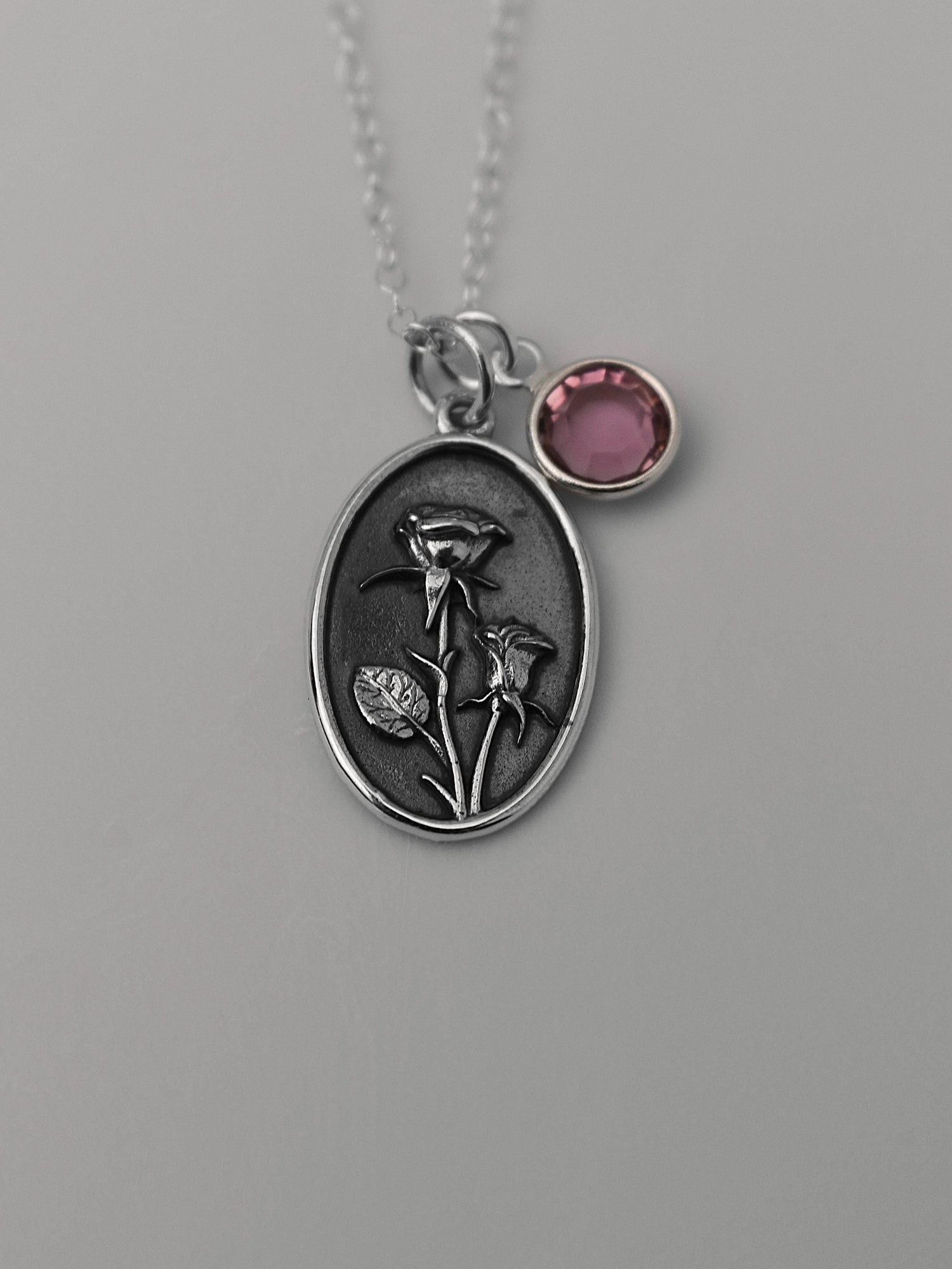 Celebrate June birthdays with the June Birth Flower Medallion Necklace featuring a delicate rose design. This elegant piece captures the timeless beauty and symbolism of the rose, making it a meaningful accessory or gift. Crafted with attention to detail, the necklace offers a refined look that complements any outfit, adding a subtle touch of sophistication and personal significance.