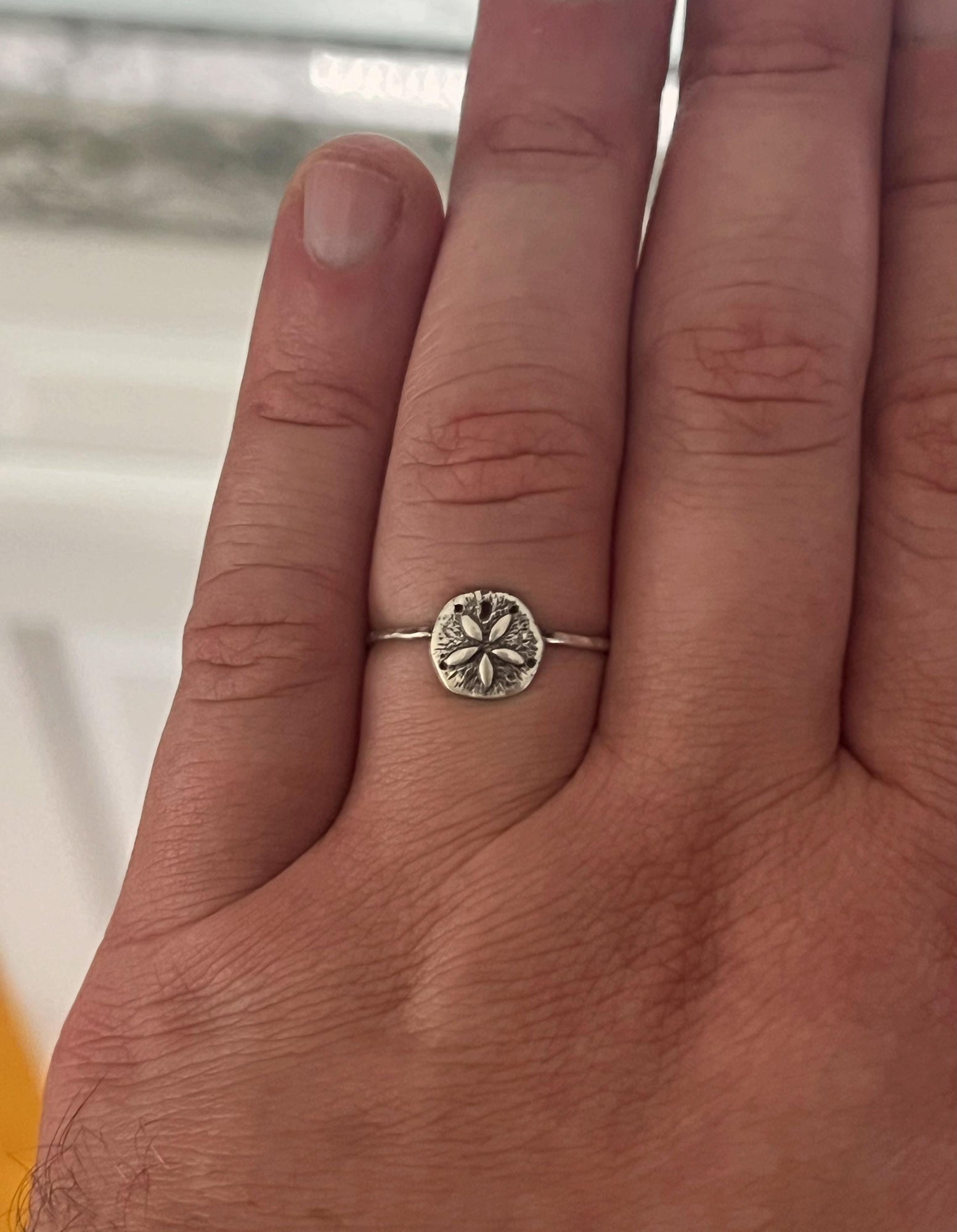 Embrace timeless elegance with the Sand Dollar Stacking Ring, a delicate piece inspired by the serene beauty of the beach. Crafted for effortless layering, this ring adds a subtle coastal charm to any outfit. Its lightweight design ensures comfortable wear all day, perfect for those who appreciate understated sophistication. Elevate your jewelry collection with this versatile ring that brings a touch of ocean-inspired grace to every look.